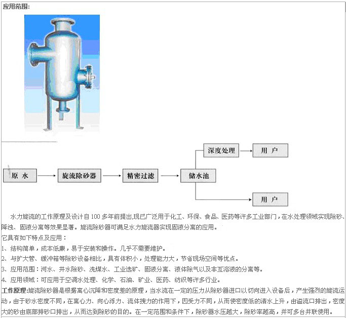 1)正常工作時,需開啟進、出水閥門、關(guān)閉排污閥; 2)當儲砂到一定高度時,應(yīng)排污。排污時打開排污閥,直到清水流出; 3)排污完畢后,關(guān)閉排污閥即可; 4)如排砂壓力不足,可關(guān)閉出水處的閥門; |